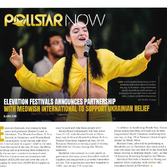 “Last February, MedWish began working with recipient organizations to facilitate shipments of medical supplies to Ukraine to help those impacted by the war. To date we have shipped approximately 150,000 lbs. of support as part of our crisis relief efforts,” stated Britta Latz,Executive Director of MedWish International. “Not only did Elevation provide financial contributions early in the crisis that enabled MedWish to provide aid, Elevation also allowed us to spread the word about our efforts at the Wonderstruck Music Festival.”
